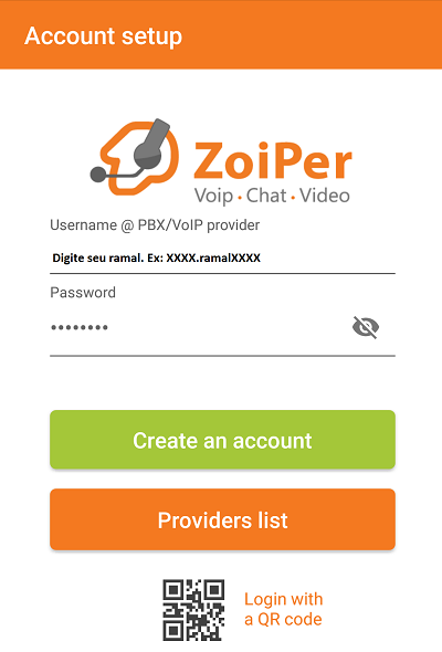 - Ao abrir o aplicativo, insira os dados do seu ramal.