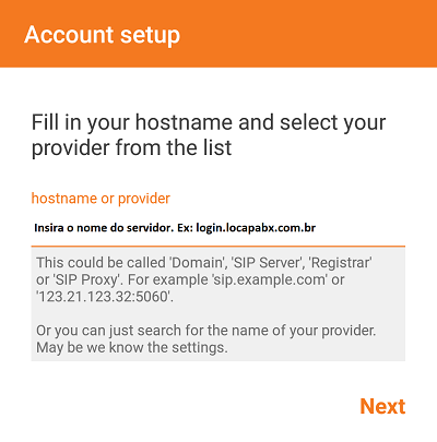 - Agora insira o nome do seu servidor, Ex. ramal@sip.globalcontrolseg.com.br